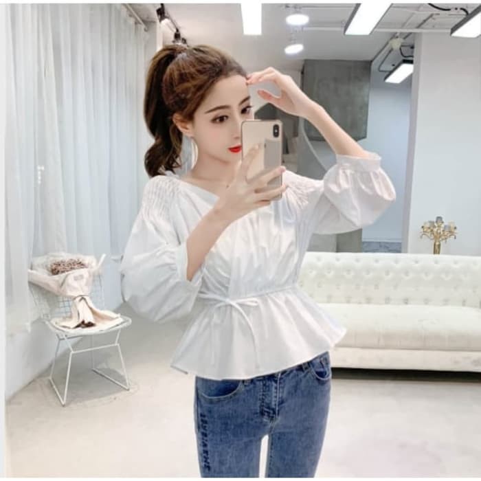 Blouse baju atasan wanita cewe ala korea formal kerja kuliah nindy top white ve 44khh sho indonesia.
