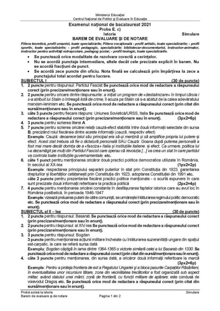 Subiectele la istorie la bac 2020 respectă programa elaborată de ministerul educației.